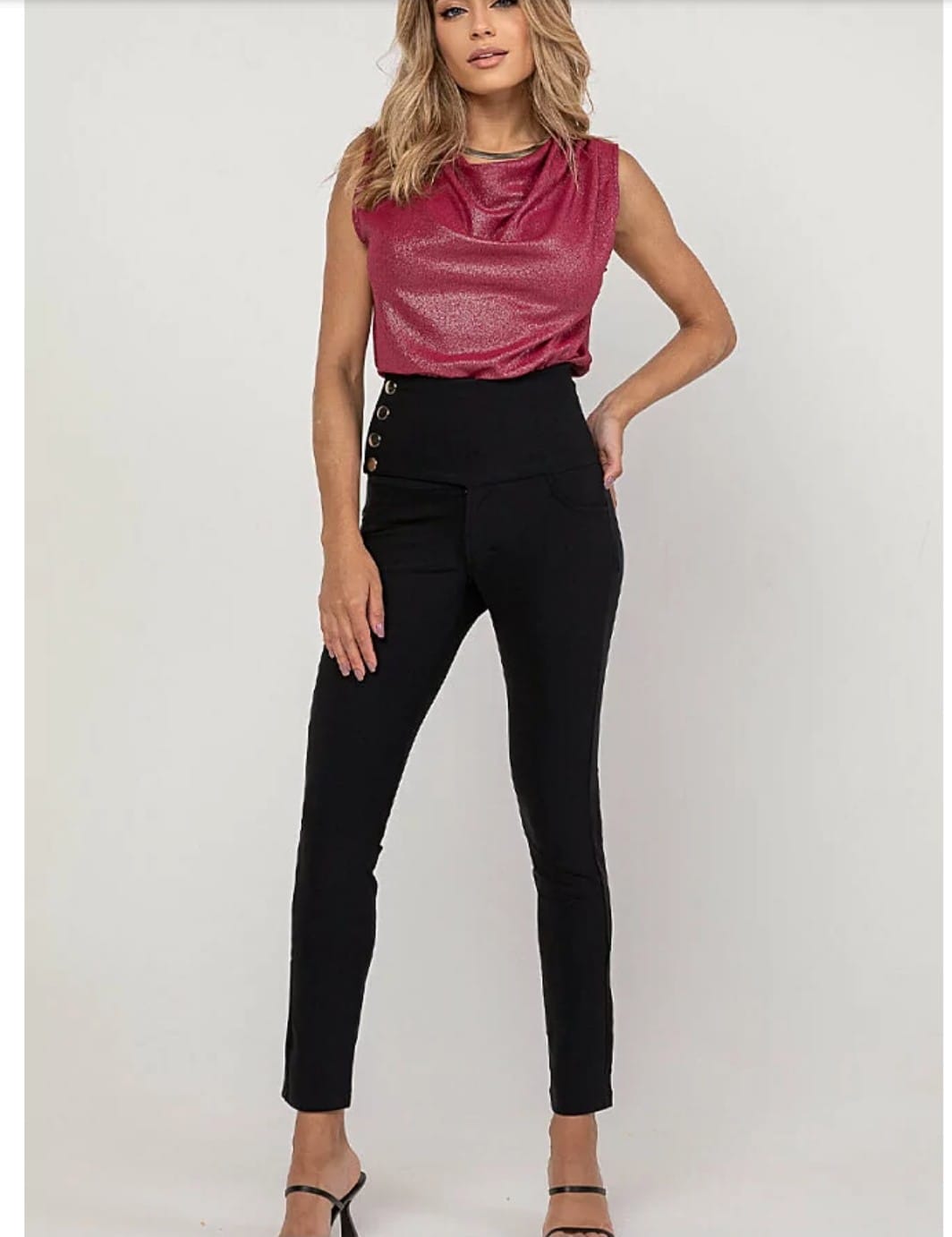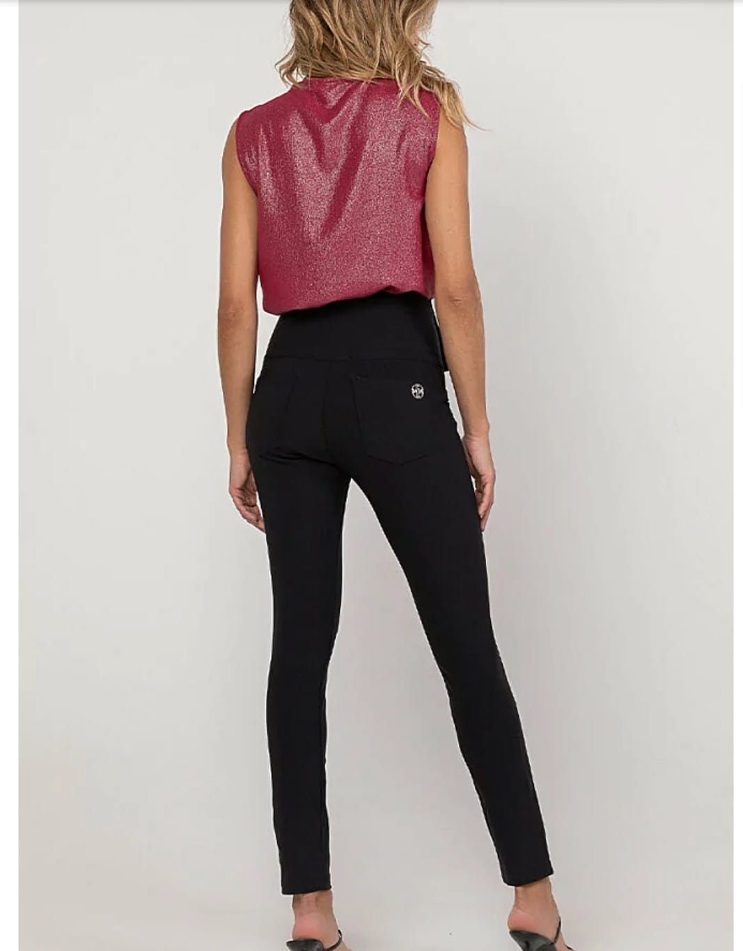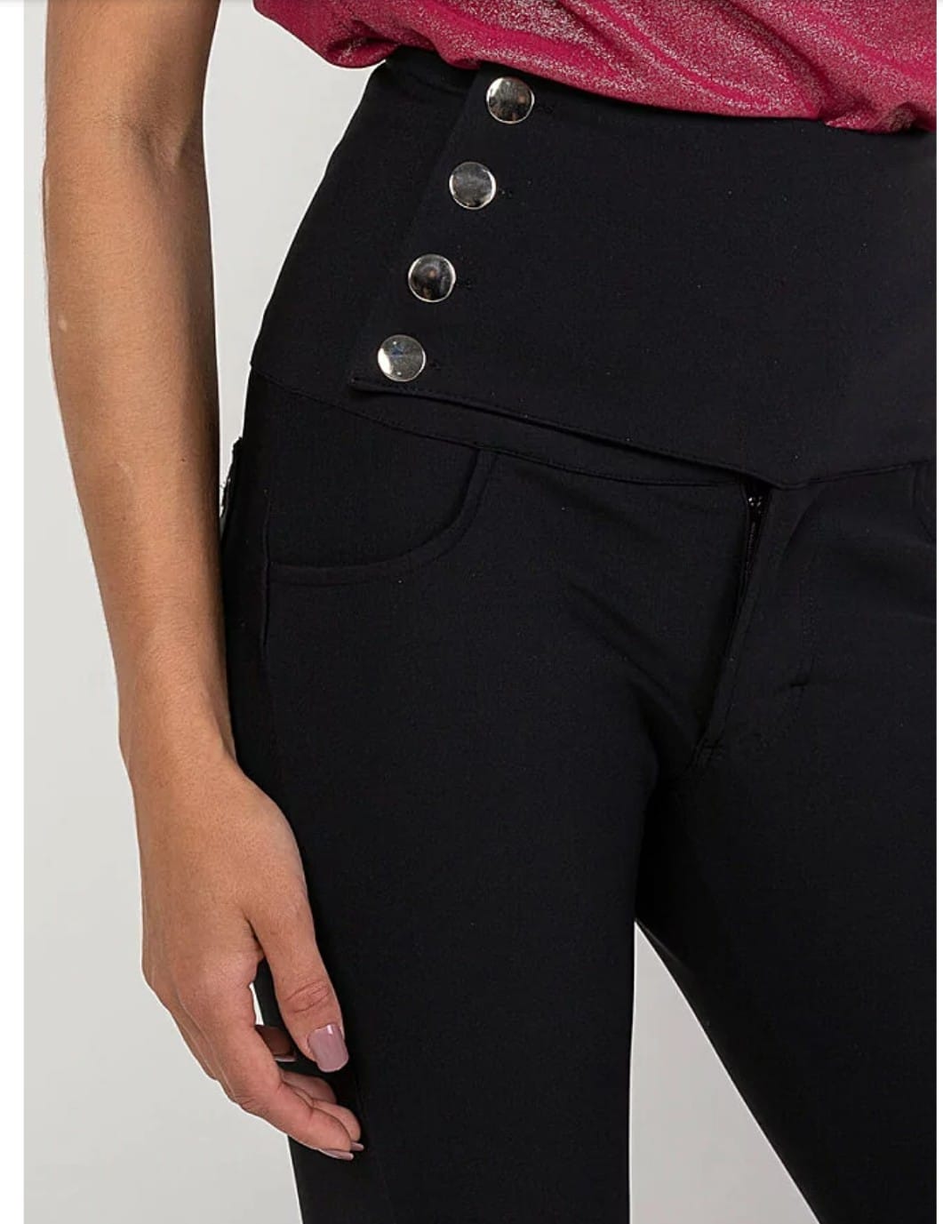 Calça bandagem leg com bolso preto. Calça miss misses bandagem leg com bolso preto, calça com tecido plano grosso, cós largo com alta compressão, botōes em prata, bolso posterior. Calça leg ging uma peça indespensavel no seu Closet feminino. A leg ging Montaria é perfeito para compor produçōes chiquissimo.