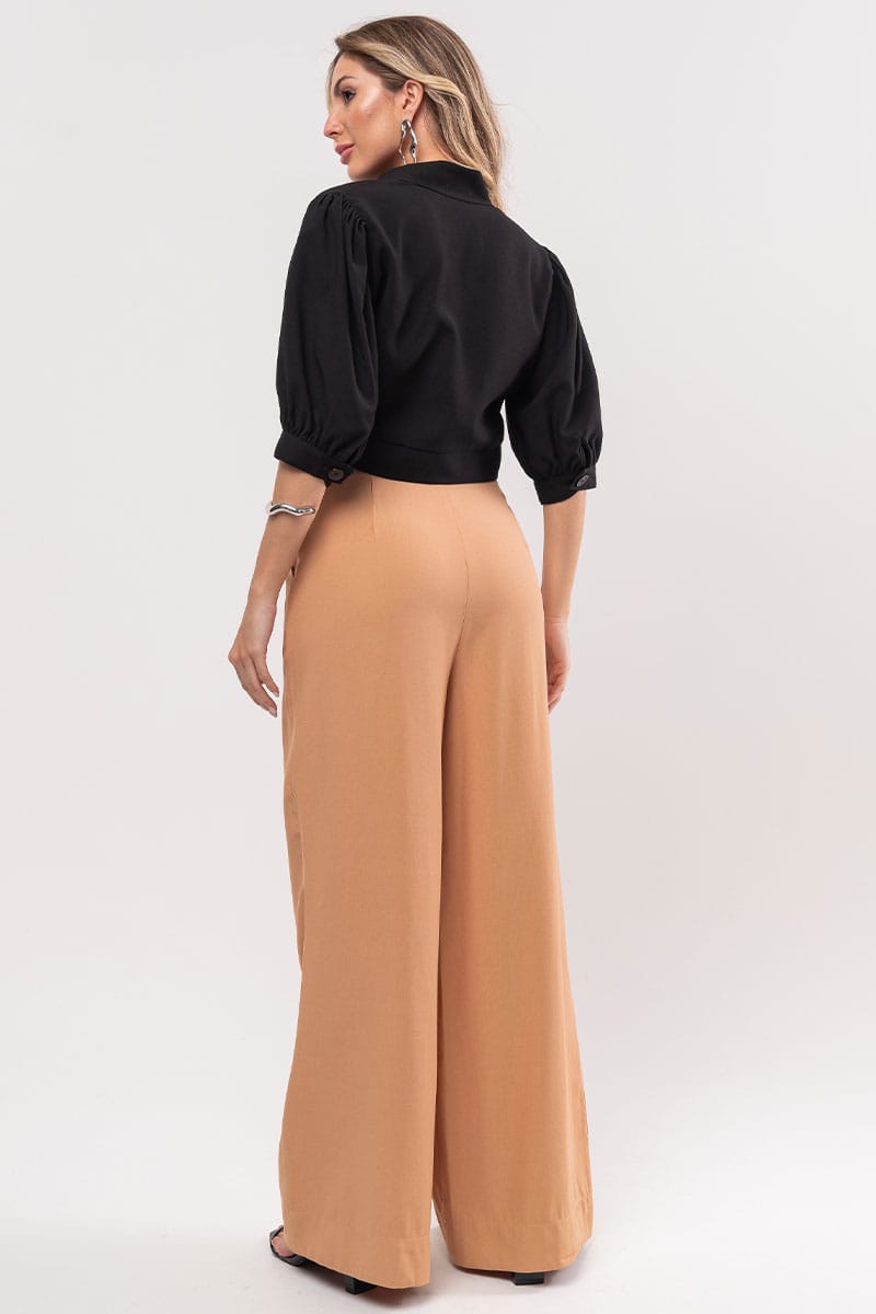 Com botão forrado no mesmo tecido e bolsos laterais, tecido confortável com toque macio em marrant, a peça atemporal é curinga para criar produções sofisticadas, confeccionada tecido plano com toque de viscose, possui modelagem de alfaiataria, cós com passantes com o cinto da mesma tonalidade e tecido, fechamento frontal por zíper, dois bolsos frontais modelo faca, e acabamento pespontado.